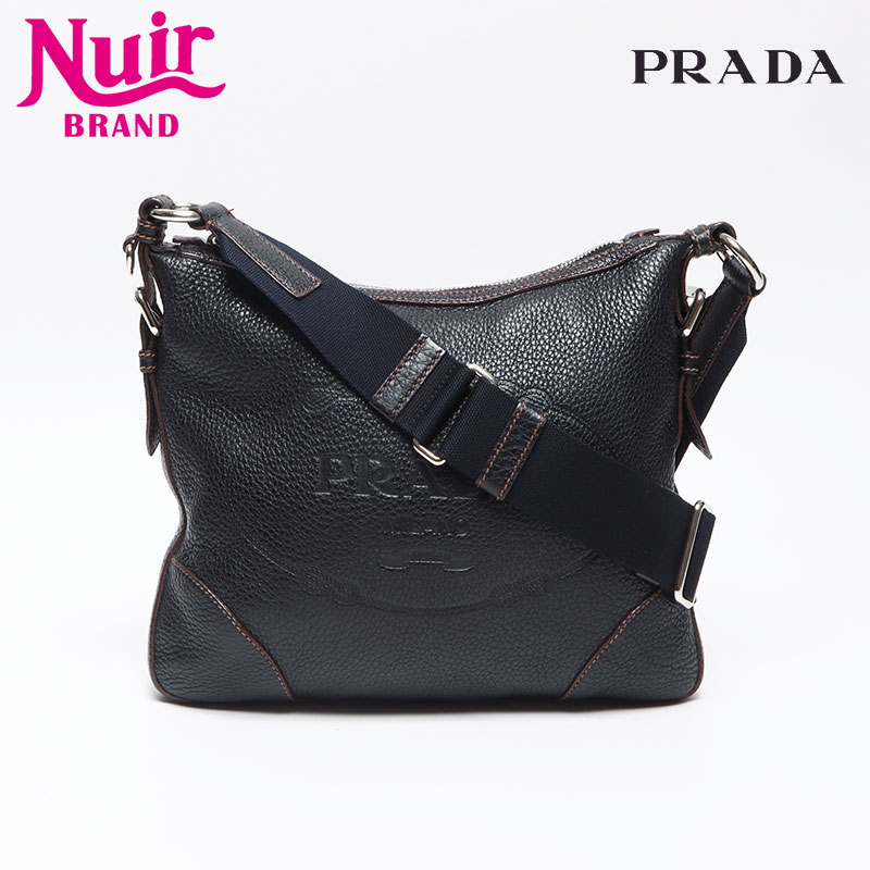 【全商品21%OFF!11/30 23:59まで】プラダ PRADA ロゴ レザー ショルダーバッグ ブラック WS13958 【中古】