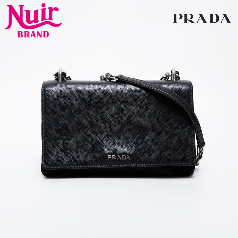 【全商品21%OFF!11/30 23:59まで】プラダ PRADA ナイロン サフィアーノ レザー チェーン ショルダーバッグ ブラック WS21615 【中古】