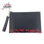 美品 PRADA プラダ サフィアーノ 花柄 ロゴ ブラック レッド シルバー金具 レザー クラッチバッグ セカンドバッグ メンズ 505328