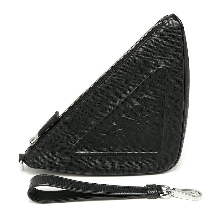 PRADA プラダ 1NE039 2BYA F0002 トライアングル レザー クラッチバッグ ブラック リストレット付き ポーチ セカンドバッグ ショルダーバッグ トライアングル ロゴ プレート レディース メンズ ユニセックス売れ筋