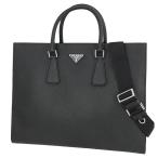 プラダ トートバッグ 三角プレート トリヨンレザー黒 メンズハンドバッグ大 美品@718