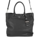 プラダ PRADA ロゴ金具 トートバッグ 2way ショルダー ハンドバッグ ヴィンテージ加工 シワ加工 レザー ネロ ブラック 黒 ビジネス メンズ レディース