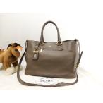 新古品 プラダ PRADA サフィアーノ キュイール トライアングル 2WAY トートバッグ ハンドバッグ ショルダーバッグ ビジネスバッグ グレー 2VG101