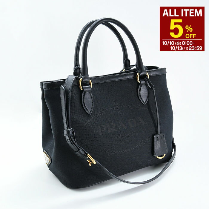 【5%OFFクーポン】PRADA プラダ バッグ ロゴ ジャカード キャンバス & レザー ハンドバッグ 1BA172 UCW レディース ブラック ショルダーバッグ 2wayバッグ チャーム付き