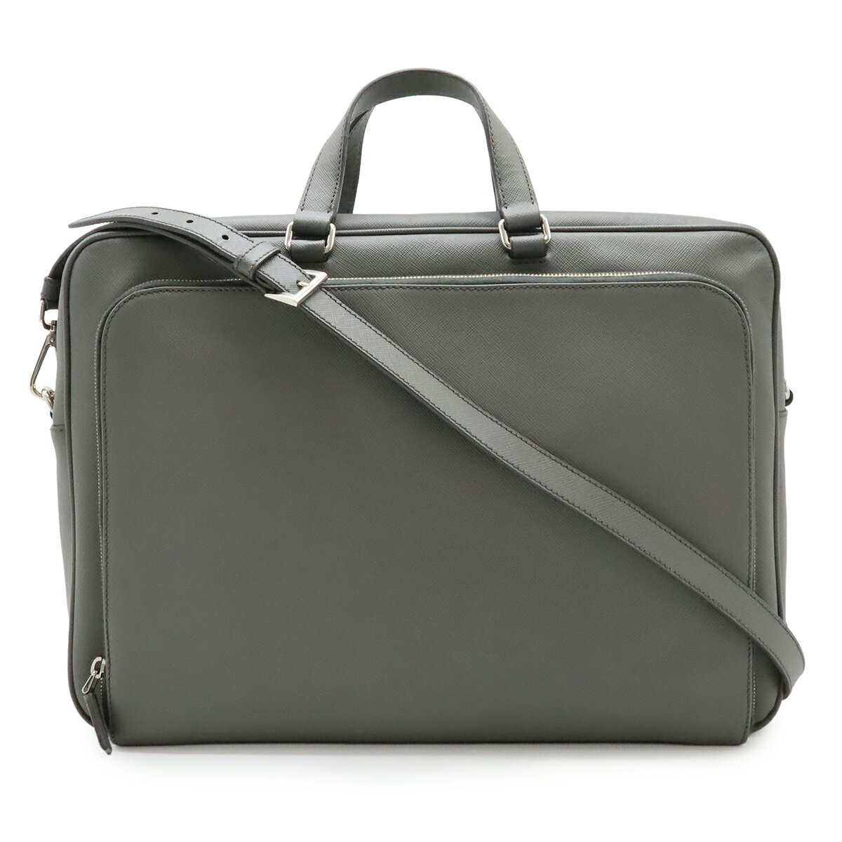 PRADA プラダ SAFFIANO ブリーフケース 書類カバン ビジネスバッグ サフィアーノレザー グレー シルバー金具 国内アウトレット購入品 VR0077 【中古】