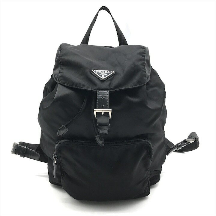 PRADA プラダ テスート 三角ロゴプレート ブラック 黒 シルバー金具 ナイロン B1197F リュック・デイパック レディース 505357 【中古】