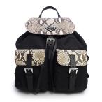 (美品)PRADA プラダ 1BZ811 テスート バックパック パイソン ブラック ベージュ リュック デイパック ナイロン エキゾチックレザー シルバー金具