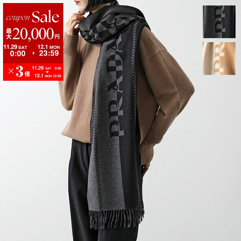 【最大2万円OFFクーポン対象・11/29~12/1限定】PRADA プラダ マフラー 2FS057 2FK3 レディース フリンジ ストール ジャカードロゴ ウール F0H16/ARDESIA+NERO 2FS057_2FK3_F0H16