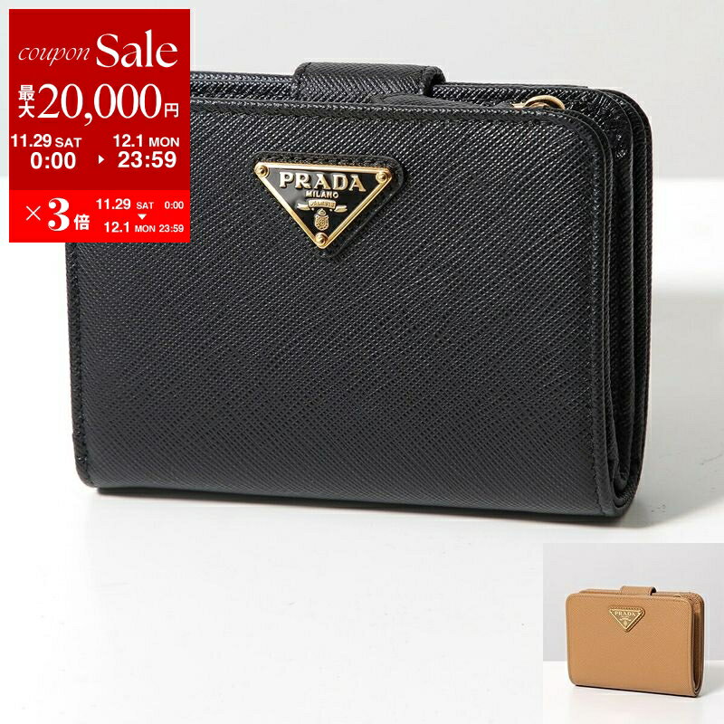 【最大2万円OFFクーポン対象・11/29~12/1限定】PRADA プラダ 二つ折り財布 1ML018 QHH レディース サフィアーノレザー トライアングルロゴ ミニ財布 カラー2色