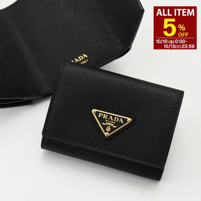 【5%OFFクーポン】PRADA プラダ 財布 サフィアーノトライアングル 1MH042 QHH レディース ブラック 牛革 ロゴ 折りたたみ財布 折り財布 三つ折り財布 SAFFIANO