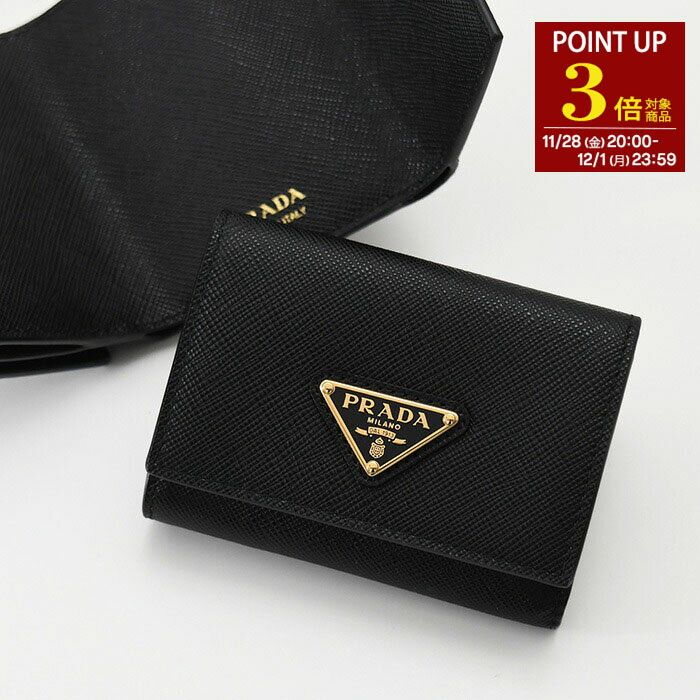 【P3倍対象商品】PRADA プラダ 財布 サフィアーノトライアングル 1MH042 QHH レディース ブラック 牛革 ロゴ 折りたたみ財布 折り財布 三つ折り財布 SAFFIANO