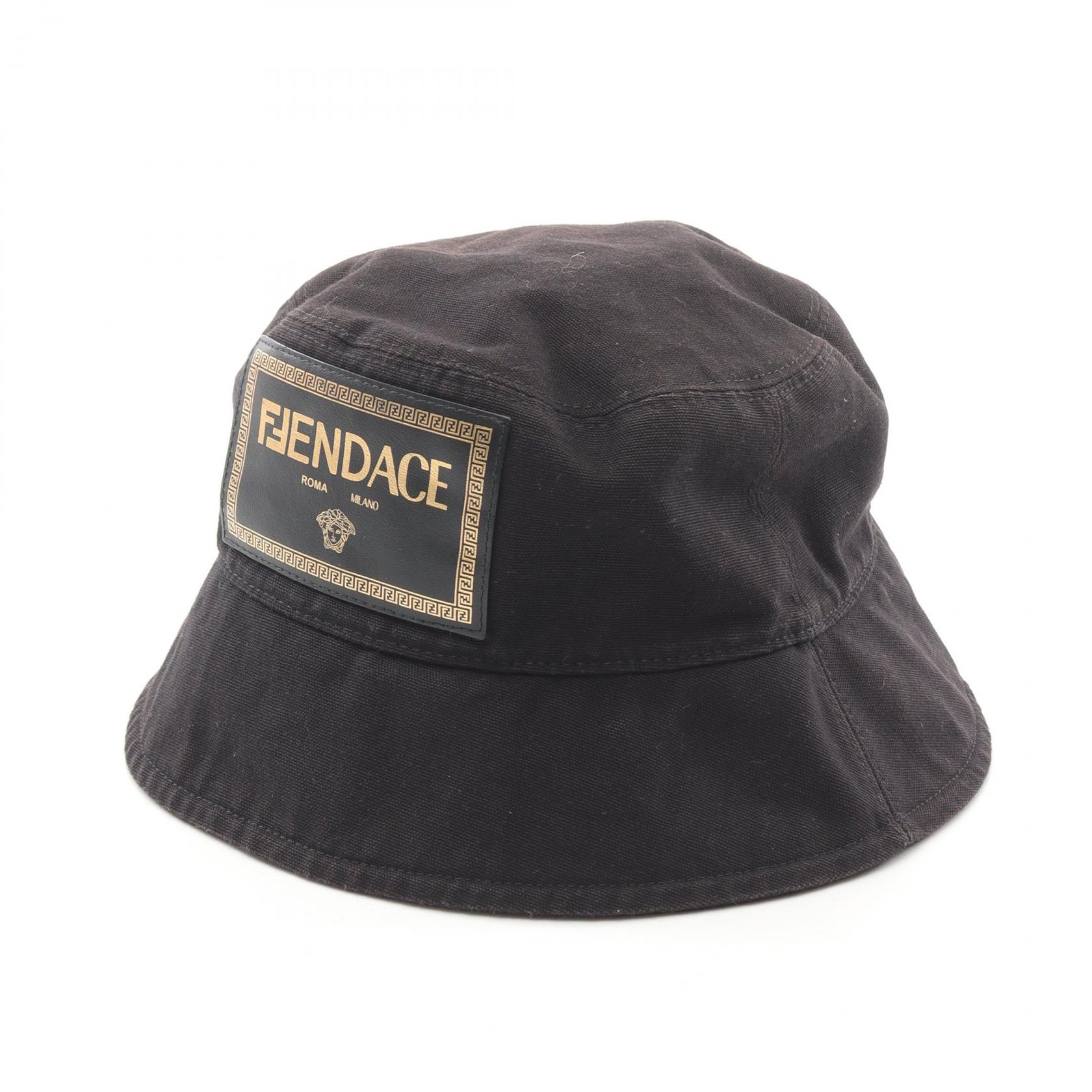 ◆全品5%OFFクーポン対象◆フェンディ FENDI FENDI × VERSACE FENDACE フェンダーチェ 帽子 コットン レディース ブラック系 FXQ801 【中古】