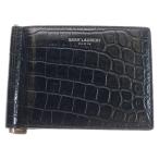 YVES SAINT LAURENT イヴサンローラン マネークリップ 二つ折り財布 ウォレット カードケース ブラック シルバー金具 クロコ