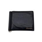 PRADA◆マネークリップ付きカードケース/レザー/BLK/メンズ
