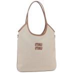 ミュウミュウ トートバッグ アイヴィー キャンバス レザー バッグ ベージュ ブラウン レディース MIU MIU 5BG231V ACRN F062F A4対応