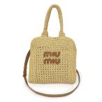 (新品・未使用品)miu miu ミュウミュウ 5BA283 トートバッグ RAFIA ラフィア リネン NATURALE ナチュラル 2Way 斜め掛け ショルダー トート ハンドバッグ
