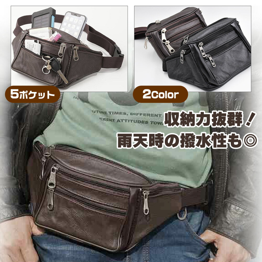レザー ウエストバッグ 腰付け ブラック ダークブラウン ボディバッグ 収納力抜群 ベルト取り付け スマホ全機種収納可 多収納 小型鞄 黒 茶 撥水性 ツールポーチ ポーチ 紳士 男 撥水性 メンズ