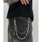 ウォレットチェーン 「NOWLE」クロス&パール&カラーストーン 2連 ウォレットチェーン