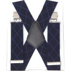 サスペンダー メンズサスペンダー X型50mm幅広 長さ最大110cm 男女兼用 4クリップ 紺(紺(縞柄), Free Size)