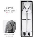 サスペンダー / メンズ 30mm幅 X型 / ホワイト ( 白 ) 無地 / フォーマル