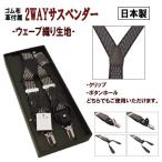 2WAY サスペンダー クリップ ボタンホール 吊りバンド ズボン吊り ビジネス フォーマル メンズ 紳士用 Y型 フリップ 織り生地 牛革付属 30mm幅 日本製