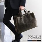 スモール クロコダイル メンズ トートバッグ センター取り 大容量 2WAY 仕様 ラウンドファスナー ポロサス ネイビー/ダークブラウン/ブラック 安心 保証書 付き(06001468r) 本革 トート型 A4 サイズ 対応 クリスマス ギフト プレゼント