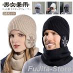 耳あて付きニット帽 裏起毛 ネックウォーマー 2点セット レディース メンズ 暖かい ニット帽 秋冬 耳当て付き