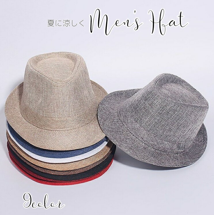 中折れハット 帽子 ハット 麻 麦わら帽子 中折れ帽子 メッシュ 合皮 ストローハット 無地 チェック柄 ストライプ柄 メンズ レディース 帽子 HAT 350