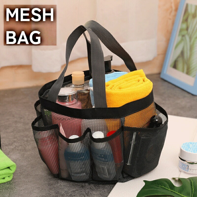 送料無料 メッシュバッグ ハンドバッグ お風呂バッグ スパバッグ プールバッグ 手提げバッグ かばん 通気性 シンプル 男女兼用 小物入れ 大容量 ポケット 温泉 海 ビーチ 旅行 鞄 カバン ユニセックス レディース メンズ ブラック 黒