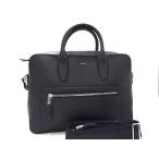 ■新品同様■ HUGO BOSS ヒューゴボス レザー 2WAY ビジネスバッグ ブリーフケース ショルダー 肩掛け メンズ ブラック系 FG9346