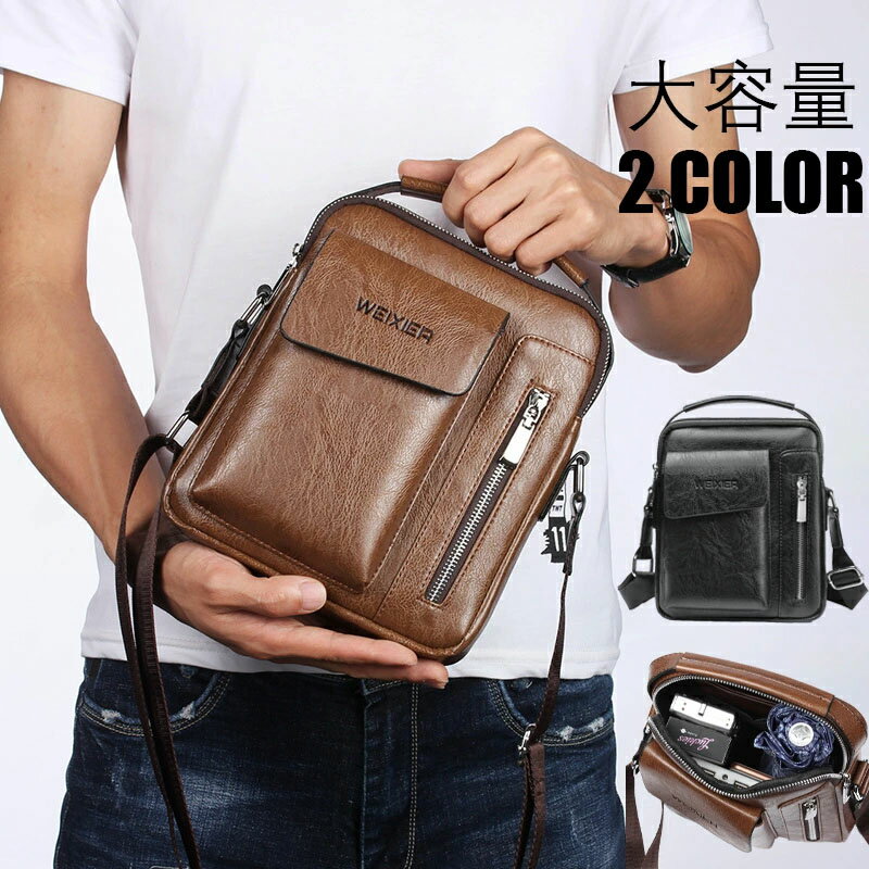 【楽天スーパーSALE10%OFF】ショルダーバッグ メンズ バッグ 大容量 軽い 革バッグ 2way ビジネスバッグ 多ポケット メッセンジャーバッグ ポシェット 軽量 撥水 大人 斜め掛け 多機能 多色 機能性 カバン 肩掛け 紳士 出勤 カジュアル