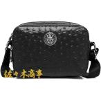 オーストリッチ 型押し 牛革 ミニショルダーバッグ メンズ ポシェット ショルダーミニポーチ 横型 2室仕切 本革 レザー小さめ ボディ