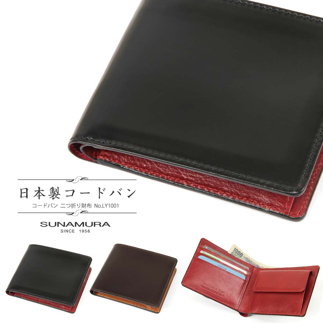 【10%OFF】SUNAMURA スナムラ ジャパンコードバン 二つ折り財布 メンズ 財布 コードバン 折りたたみ レザー 馬革 日本製 通勤 革小物 メンズ 二つ折り 財布 ブランド 本革 折財布 メンズ 折り財布 ly1001