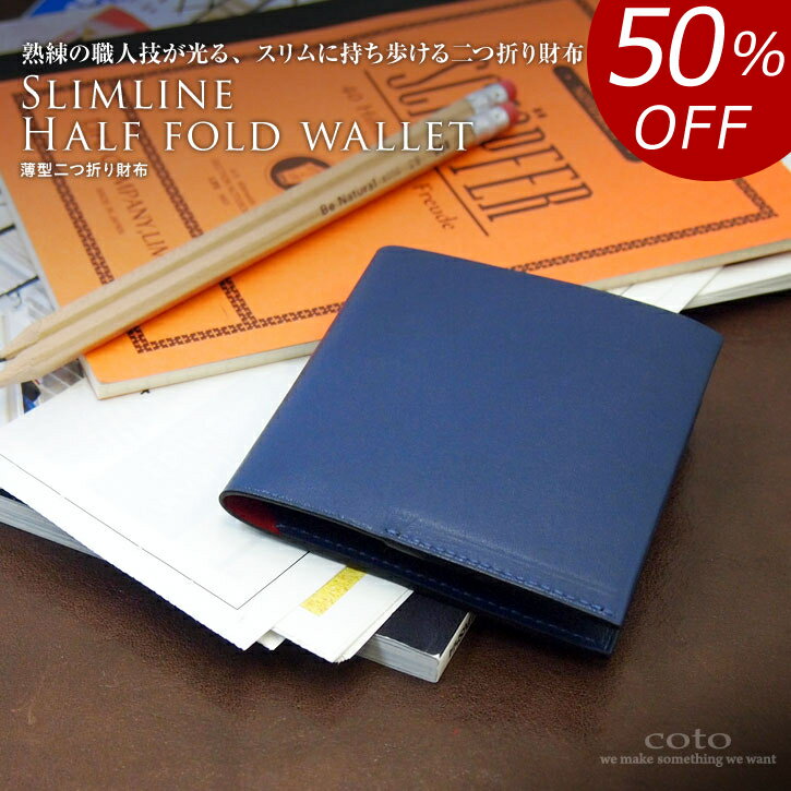 【50%OFF ¥8,250引き 楽天スーパーSALE】本革 超薄い 二つ折り財布 小銭入れなし 日本製[ネイビー/紺/コン]メンズ レディース 薄型 薄い スリム 軽い 軽量 超軽量 柔らかい 本革財布 革 折財布 ミニ財布 小銭入れなし ビジネス 通勤 高級 高級財布 使いやすい ブランド
