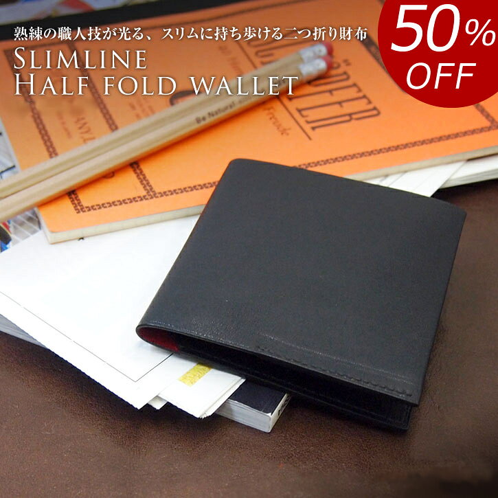 【50%OFF ¥8,250引き 楽天スーパーSALE】本革 超薄い 小銭入れなし 二つ折り財布[ブラック/黒/クロ]日本製 メンズ レディース 薄型 薄い 超薄い 財布 軽い 軽量 超軽量 柔らかい 本革財布 折財布 ミニ財布 革 ビジネス 通勤 高級 高級財布 お財布 使いやすい ブランド