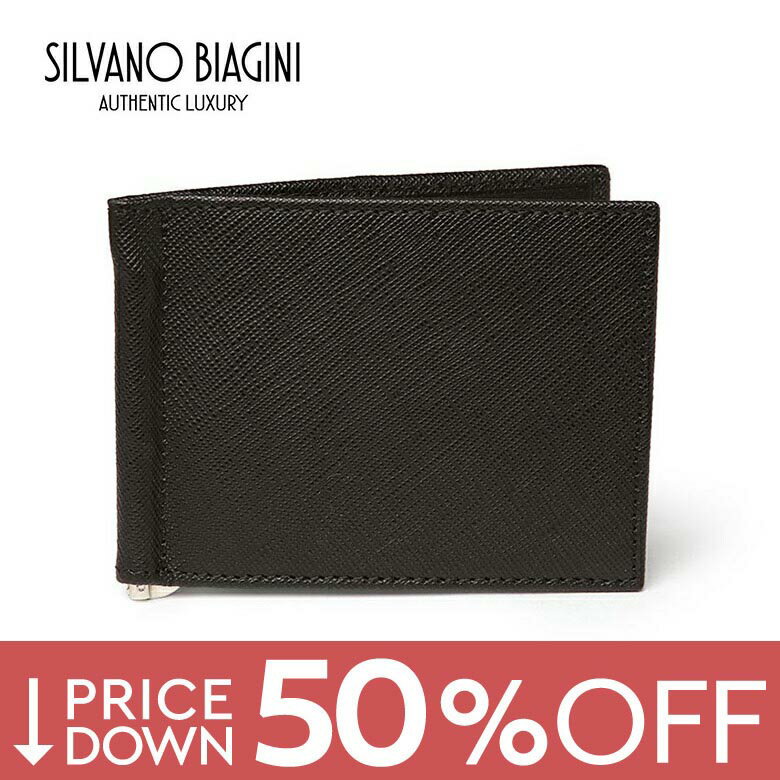 【50%OFF!】シルヴァーノ ヴィアジーニ 財布 マネークリップ 二つ折り財布 小銭入れなし イタリア製 サフィアーノ メンズ カードケース Silvano Biagini レザー 【レビュー】【返品不可】