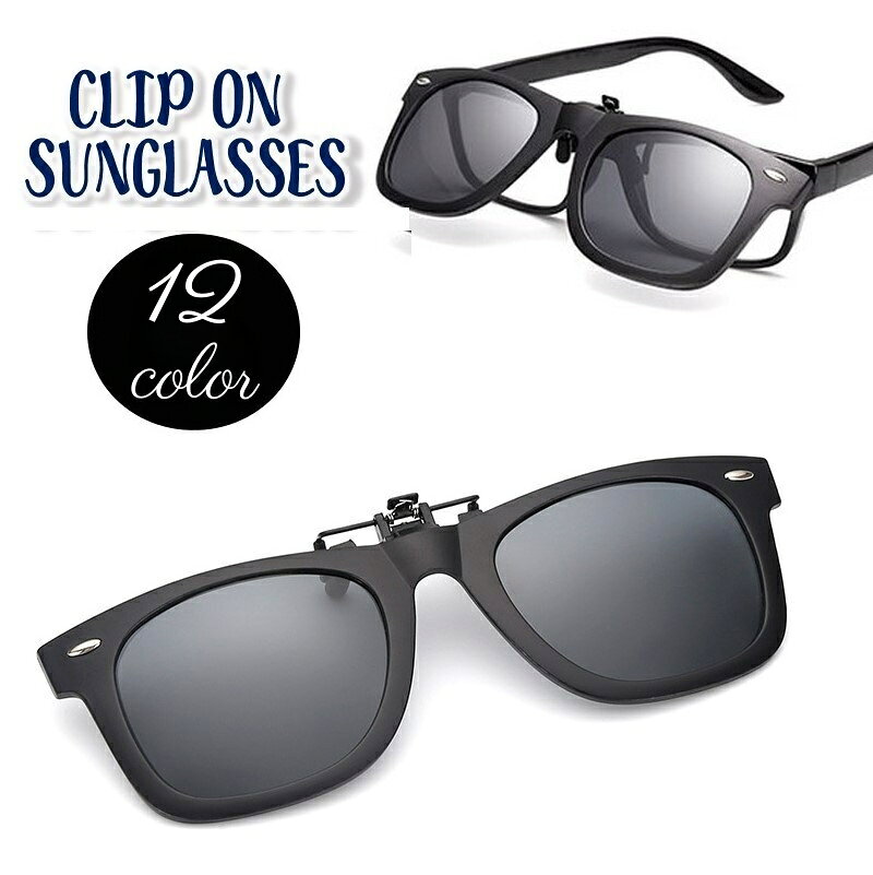 送料無料 クリップオンサングラス クリップタイプ 取り付け簡単 UVカット ミラータイプ 偏光グラス 紫外線対策 UV400 メンズ 男性 レディース 女性 便利 眼鏡に装着 おしゃれ 男女兼用 ユニセックス 遮光