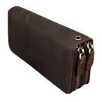 TIDING セカンドバッグ メンズ 本革 アコーディオン式 長財布 小銭入れあり ラウンドファスナー 大容量 ロングウォレット 厚手牛革 茶
