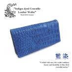 クロコダイルレザー 藍染 長財布 ワニ革 本革 日本製 メンズ 藍色 ブルー YKKエクセラファスナー 高級 ギフトにも