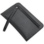 クラッチバッグ 超スリム PUレザー 長財布 リストレット付き 薄型 セカンドバッグ ウォレットポーチ ジッパー開閉 メンズ (ブラック)