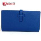 新品同様 HERMES エルメス ニュー・Hパッサン・トゥタンマン Hロゴ ロングウォレット クラッチバッグ 長財布 ディープブルー【中古】