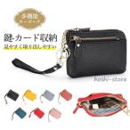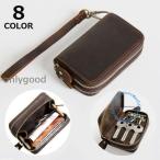 キーケース メンズ レディース ダブルファスナー 小銭入れ コインケース ミニ財布 カードポケット レザー 本革 ストラップ付き