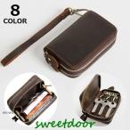 キーケース メンズ レディース ダブル 小銭入れ コインケース ミニ財布 カードポケット レザー 本革 ストラップ付き