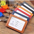 パスケース カードケース リール付き 伸びる レザー 革 ICカードケース 伸縮 定期入れ IDカード おしゃれ 縦型 横型