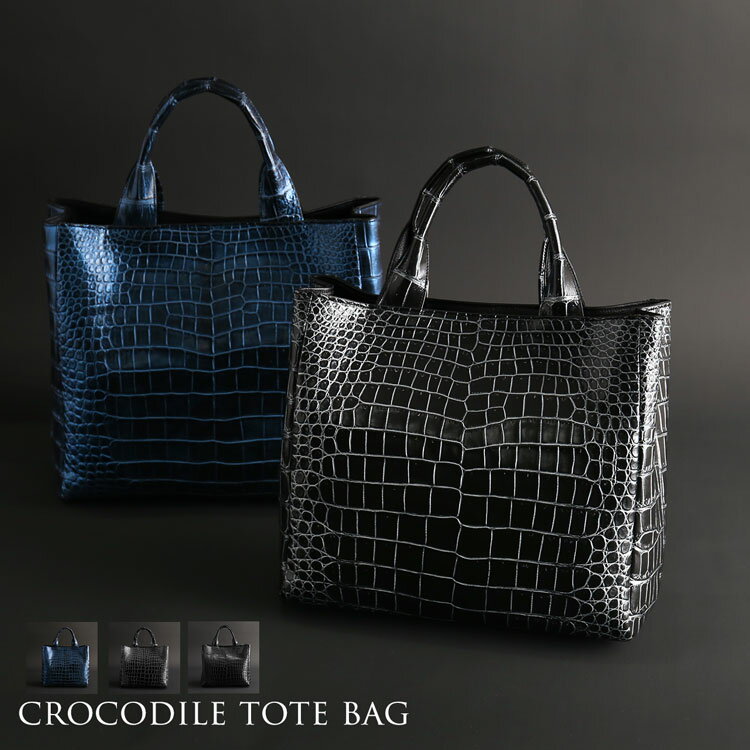 クロコダイル ミニトートバッグ メンズ トートバッグ 2WAY ショルダーベルト付き 日本製 マット 加工 センター取り あおりポケット 付き クロコダイルバッグ ハンドバッグ メンズバッグ B5 対応 本革 鰐革 保証書 付き プレゼント ギフト 4FA(06001685-mens-1r)