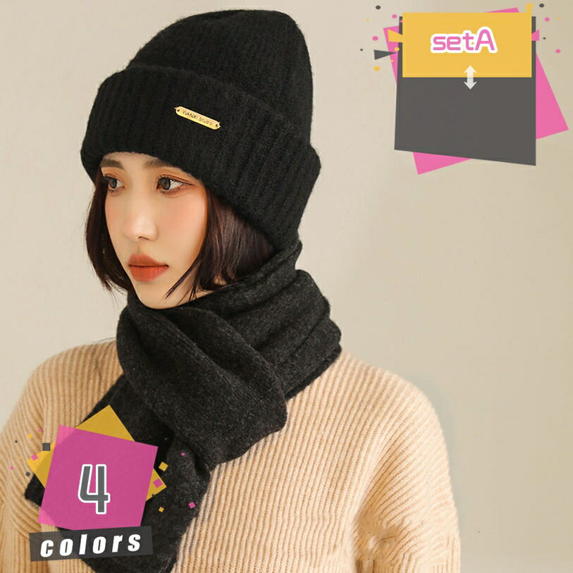 777円OFFクーポン マフラー 帽子 2点セット 大人 レディース メンズ ニット帽子 マフラー 無地 秋冬 あたたかい 防寒 保暖 男女兼用 可愛い ニット マフラー 学生 高校生 カップル お揃い 韓国風 冬物 あったか 記念日 プレゼント mdnat