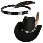 【並行輸入品】コンチョハットバンド ウェスタンカウボーイハット用 メンズ レディース フェドーラブラックハットバンド フェザー付き, ブラック,