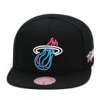 【並行輸入品】Mitchell & Ness マイアミヒート スナップバックハット メンズ マイアミバイス ブラック/アクアブルー/フク