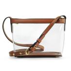 クリアジッパークロスボディバッグ ヴィーガンレザートリム付き, ブラウン, S