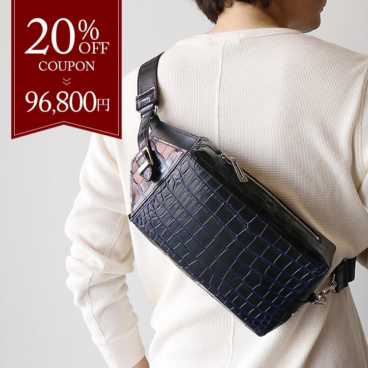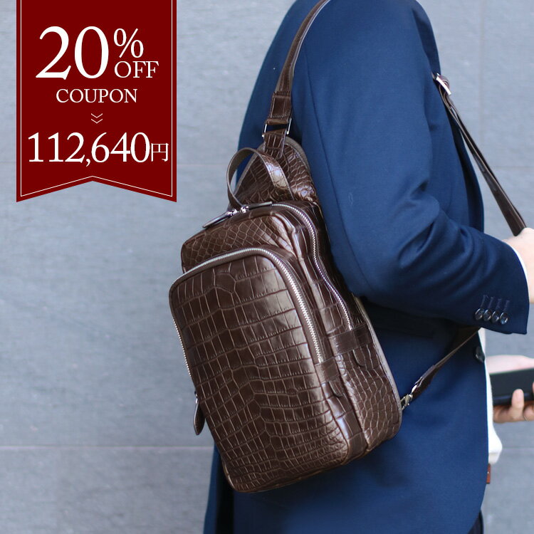 【店内全品20%オフクーポン】クロコダイル メンズ ボディバッグ 日本製 マット 加工 ショルダーバッグ 斜め掛けバッグ ウエストバッグ 2way セカンドバッグ 本革 鰐革 保証書付き JRA プレゼント ギフト sc 4FA (06001814-mens-1r)